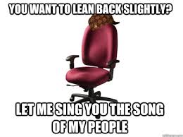 Try finding a decent position sitting up or maybe adjust the seat making it lean back a little. Its Cook Coke Crack preach it to ya brother. When you lean to far back in a chair and feel your soul leaving your body.